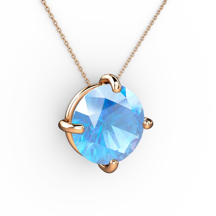 Akuamarin 18 ayar rose altın kolye (40 cm rose altın rolo zincir)