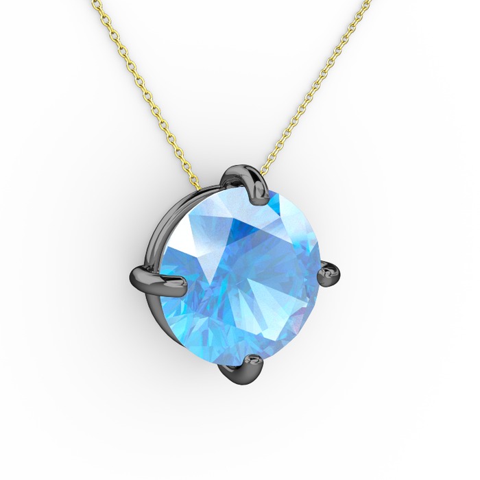 Akuamarin 925 ayar siyah rodyum kaplama gümüş kolye (40 cm altın rolo zincir)