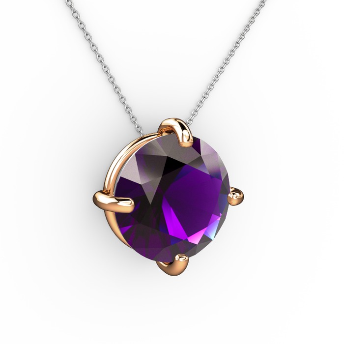 Ametist 925 ayar rose altın kaplama gümüş kolye (40 cm beyaz altın rolo zincir)