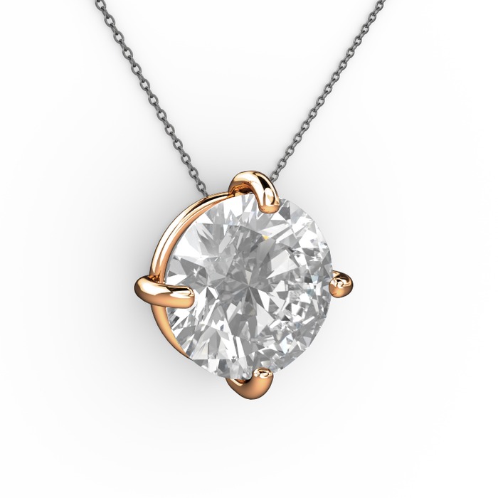 Beyaz zirkon 14 ayar rose altın kolye (40 cm gümüş rolo zincir)
