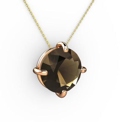 Dumanlı kuvars 925 ayar rose altın kaplama gümüş kolye (40 cm altın rolo zincir)