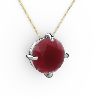 Kök yakut 18 ayar beyaz altın kolye (40 cm altın rolo zincir)