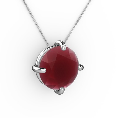 Kök yakut 18 ayar beyaz altın kolye (40 cm gümüş rolo zincir)