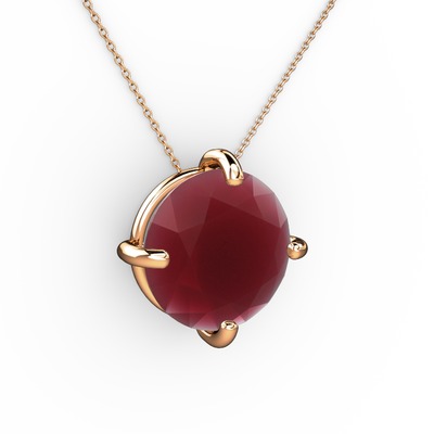 Kök yakut 18 ayar rose altın kolye (40 cm rose altın rolo zincir)