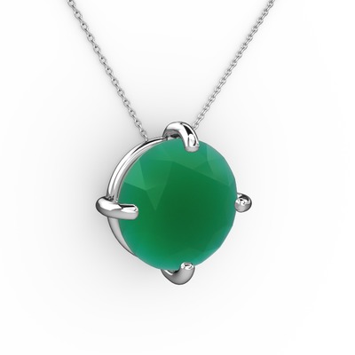 Kök zümrüt 18 ayar beyaz altın kolye (40 cm gümüş rolo zincir)