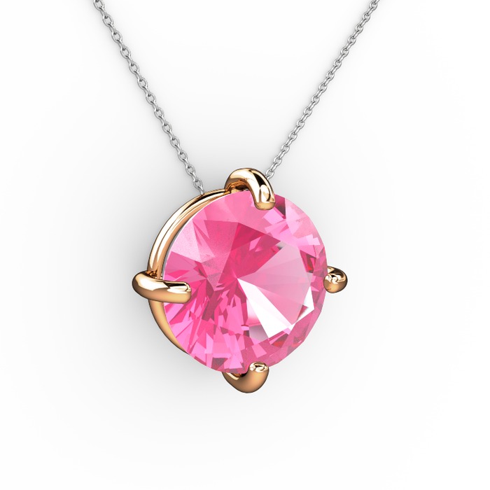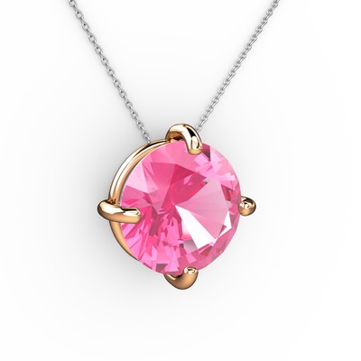 Pembe kuvars 8 ayar rose altın kolye (40 cm gümüş rolo zincir)