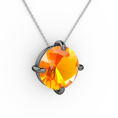 Sitrin 925 ayar siyah rodyum kaplama gümüş kolye (40 cm beyaz altın rolo zincir)