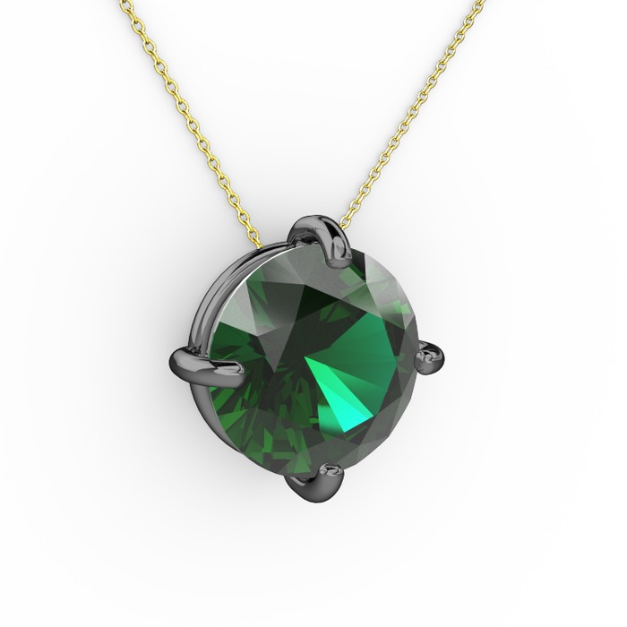 Yeşil kuvars 925 ayar siyah rodyum kaplama gümüş kolye (40 cm altın rolo zincir)