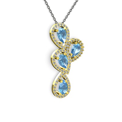 Akuamarin ve beyaz zirkon 8 ayar altın kolye (40 cm gümüş rolo zincir)