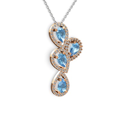 Akuamarin ve beyaz zirkon 8 ayar rose altın kolye (40 cm beyaz altın rolo zincir)