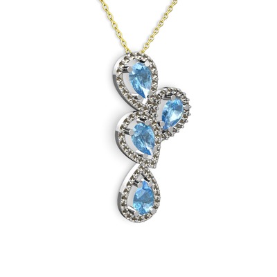 Akuamarin ve dumanlı kuvars 925 ayar gümüş kolye (40 cm gümüş rolo zincir)