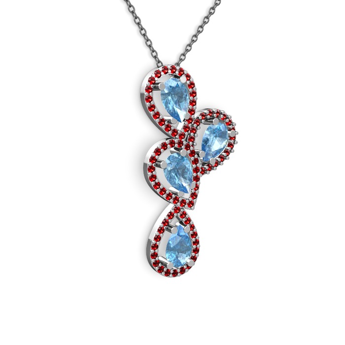 Akuamarin ve garnet 14 ayar beyaz altın kolye (40 cm gümüş rolo zincir)