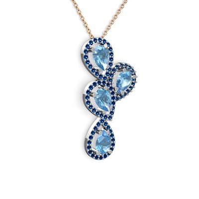 Akuamarin ve lab safir 18 ayar beyaz altın kolye (40 cm rose altın rolo zincir)
