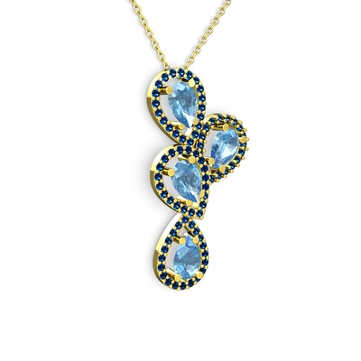 Akuamarin ve lab safir 8 ayar altın kolye (40 cm altın rolo zincir)