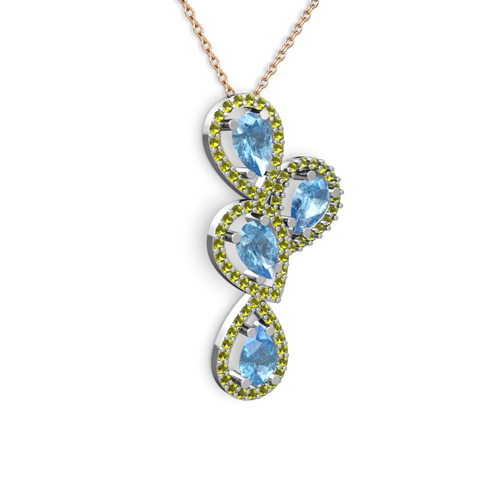 Akuamarin ve peridot 14 ayar beyaz altın kolye (40 cm gümüş rolo zincir)