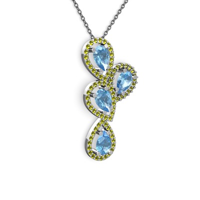 Akuamarin ve peridot 18 ayar beyaz altın kolye (40 cm gümüş rolo zincir)