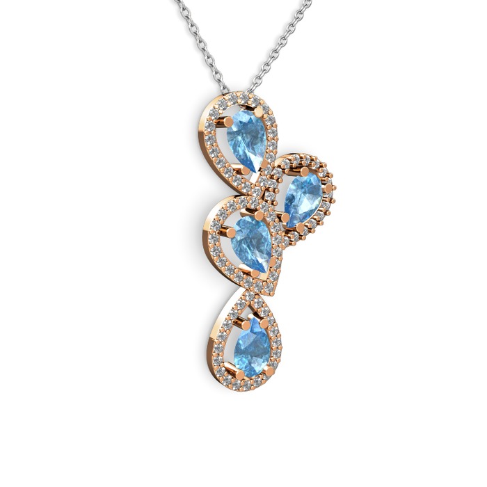 Akuamarin ve pırlanta 18 ayar rose altın kolye (0.704 karat, 40 cm beyaz altın rolo zincir)