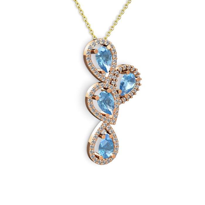 Akuamarin ve pırlanta 8 ayar rose altın kolye (0.704 karat, 40 cm altın rolo zincir)