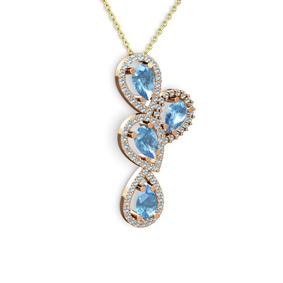 Akuamarin 925 ayar rose altın kaplama gümüş kolye (40 cm altın rolo zincir)