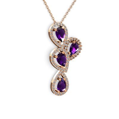 Ametist ve pırlanta 14 ayar rose altın kolye (0.704 karat, 40 cm rose altın rolo zincir)