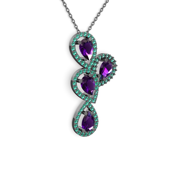 Ametist ve yeşil kuvars 925 ayar siyah rodyum kaplama gümüş kolye (40 cm gümüş rolo zincir)