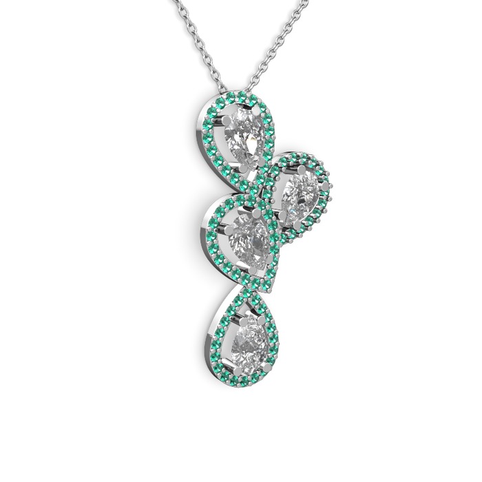 Beyaz zirkon ve yeşil kuvars 18 ayar beyaz altın kolye (40 cm beyaz altın rolo zincir)