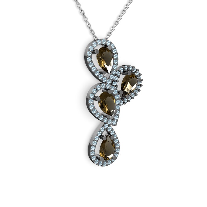 Dumanlı kuvars ve akuamarin 925 ayar siyah rodyum kaplama gümüş kolye (40 cm beyaz altın rolo zincir)