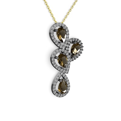 Dumanlı kuvars ve pırlanta 925 ayar siyah rodyum kaplama gümüş kolye (0.704 karat, 40 cm altın rolo zincir)