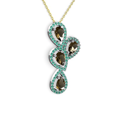 Dumanlı kuvars ve yeşil kuvars 18 ayar beyaz altın kolye (40 cm altın rolo zincir)