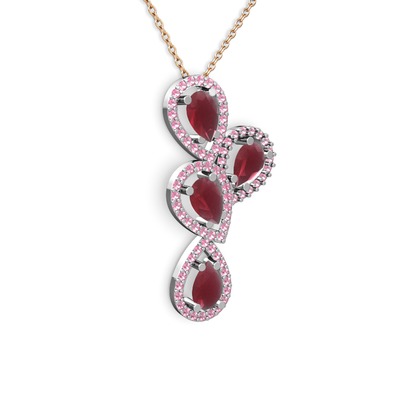 Kök yakut ve pembe kuvars 18 ayar beyaz altın kolye (40 cm gümüş rolo zincir)