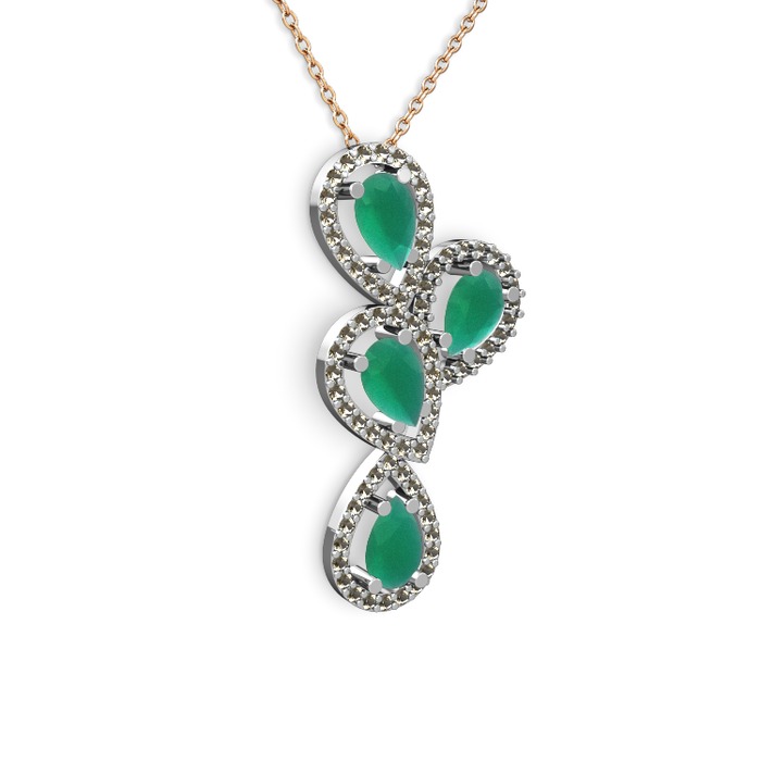 Kök zümrüt ve dumanlı kuvars 14 ayar beyaz altın kolye (40 cm rose altın rolo zincir)