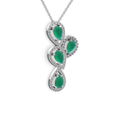 Kök zümrüt ve swarovski 18 ayar beyaz altın kolye (40 cm gümüş rolo zincir)