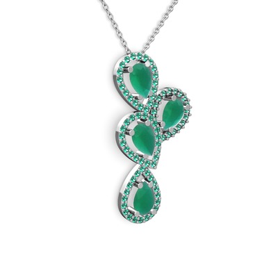 Kök zümrüt ve yeşil kuvars 925 ayar gümüş kolye (40 cm beyaz altın rolo zincir)