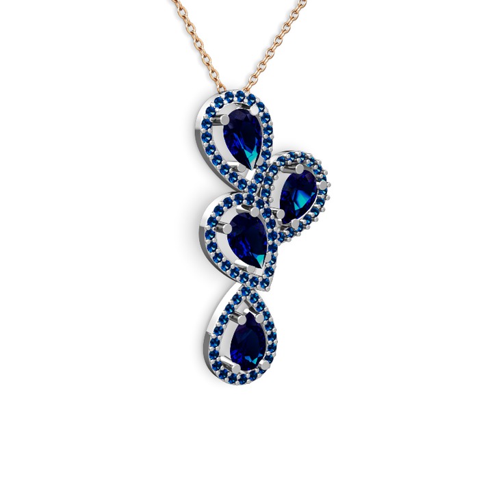 Lab safir 8 ayar beyaz altın kolye (40 cm gümüş rolo zincir)