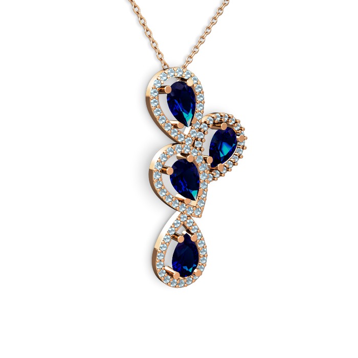 Lab safir ve akuamarin 8 ayar rose altın kolye (40 cm rose altın rolo zincir)