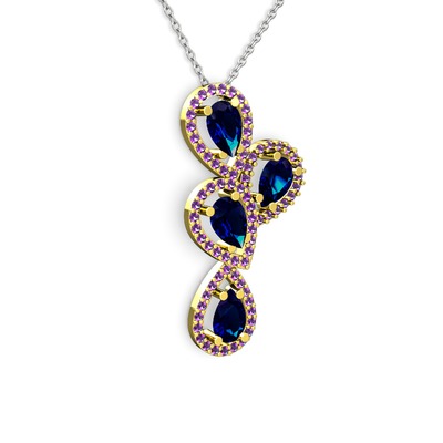 Lab safir ve ametist 925 ayar altın kaplama gümüş kolye (40 cm beyaz altın rolo zincir)