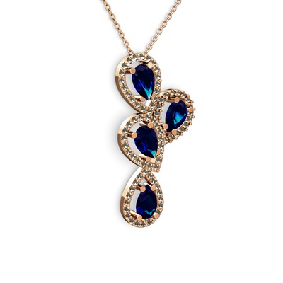Lab safir ve dumanlı kuvars 18 ayar rose altın kolye (40 cm gümüş rolo zincir)