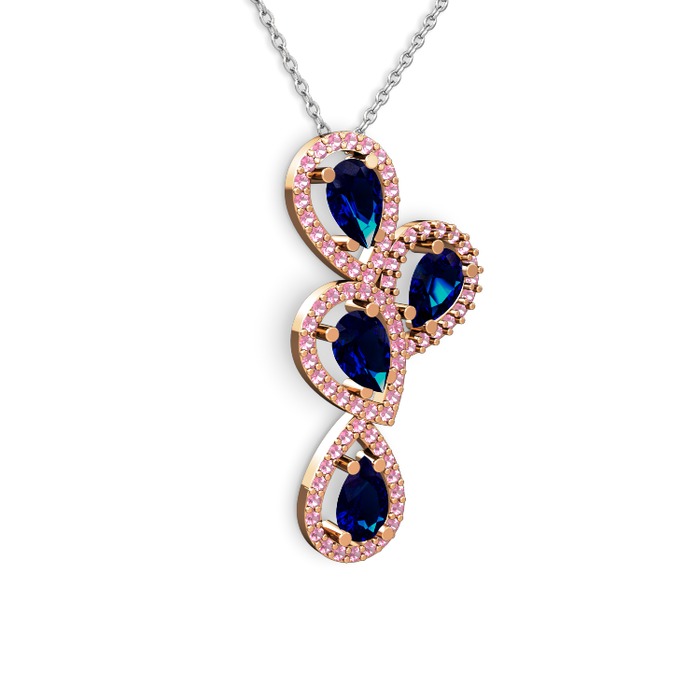 Lab safir ve pembe kuvars 18 ayar rose altın kolye (40 cm beyaz altın rolo zincir)