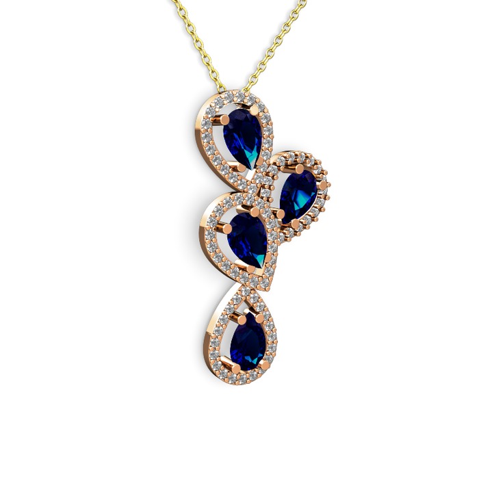 Lab safir ve pırlanta 8 ayar rose altın kolye (0.704 karat, 40 cm gümüş rolo zincir)