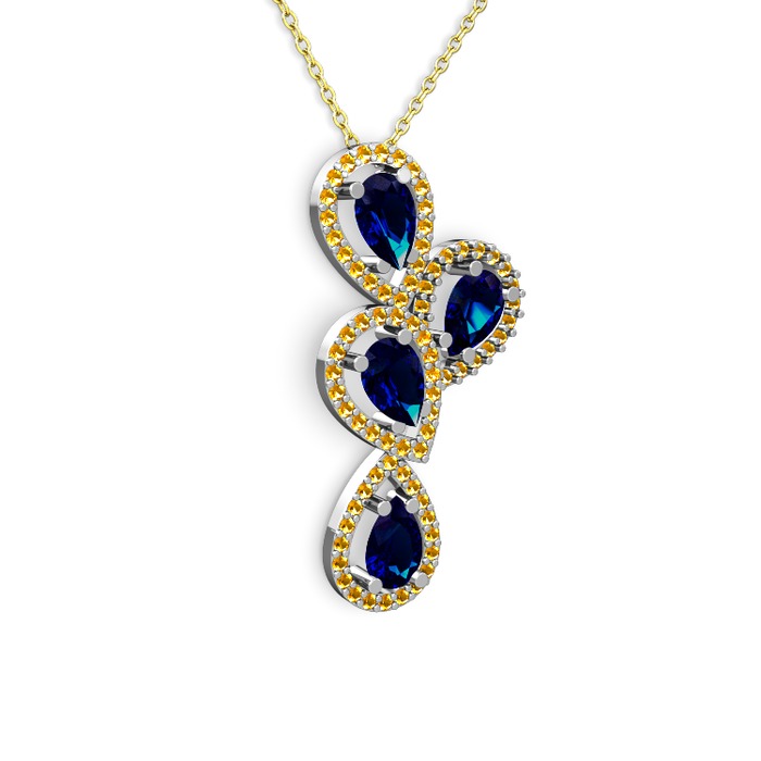 Lab safir ve sitrin 8 ayar beyaz altın kolye (40 cm gümüş rolo zincir)