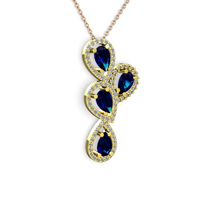 Lab safir ve swarovski 8 ayar altın kolye (40 cm gümüş rolo zincir)