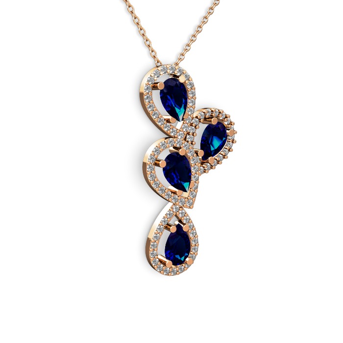Lab safir ve swarovski 925 ayar rose altın kaplama gümüş kolye (40 cm rose altın rolo zincir)