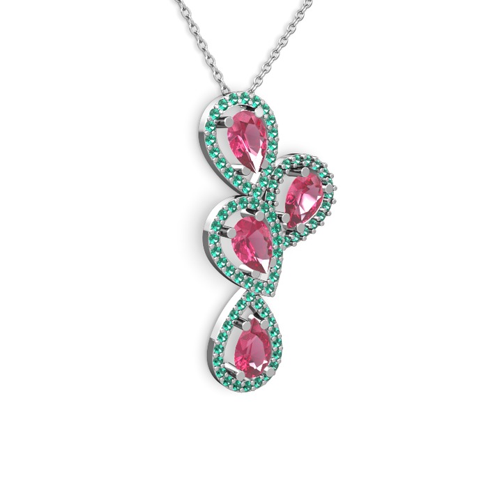 Pembe kuvars ve yeşil kuvars 18 ayar beyaz altın kolye (40 cm beyaz altın rolo zincir)
