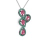 Pembe kuvars ve yeşil kuvars 925 ayar siyah rodyum kaplama gümüş kolye (40 cm beyaz altın rolo zincir)