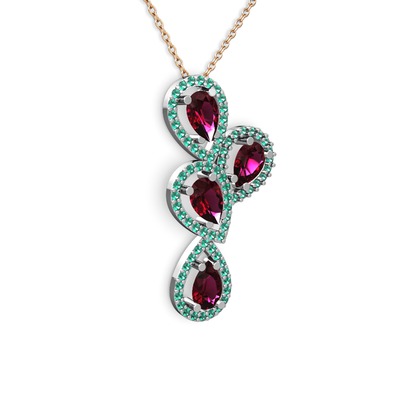 Rodolit garnet ve yeşil kuvars 925 ayar gümüş kolye (40 cm gümüş rolo zincir)