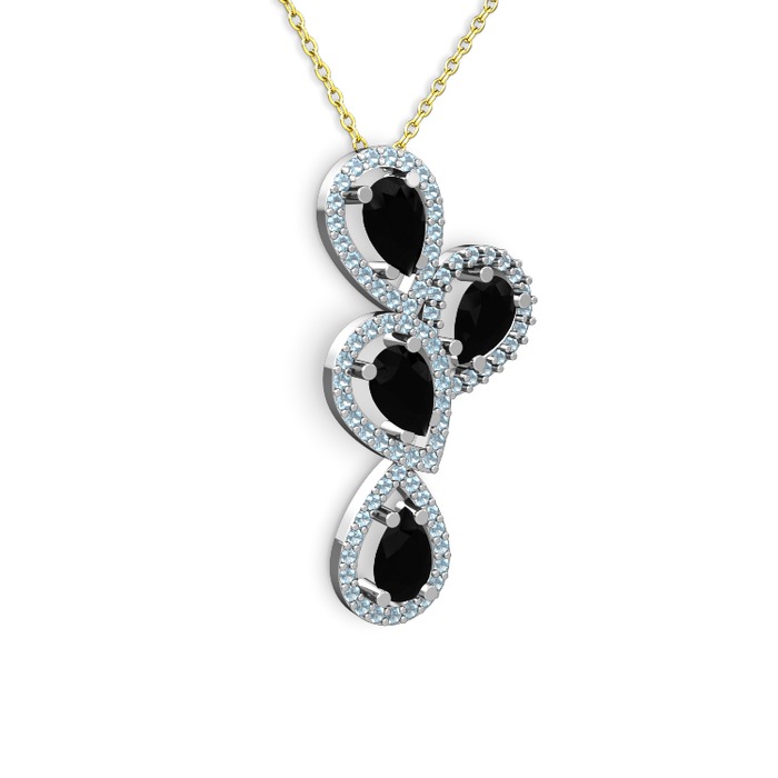 Siyah zirkon ve akuamarin 18 ayar beyaz altın kolye (40 cm gümüş rolo zincir)