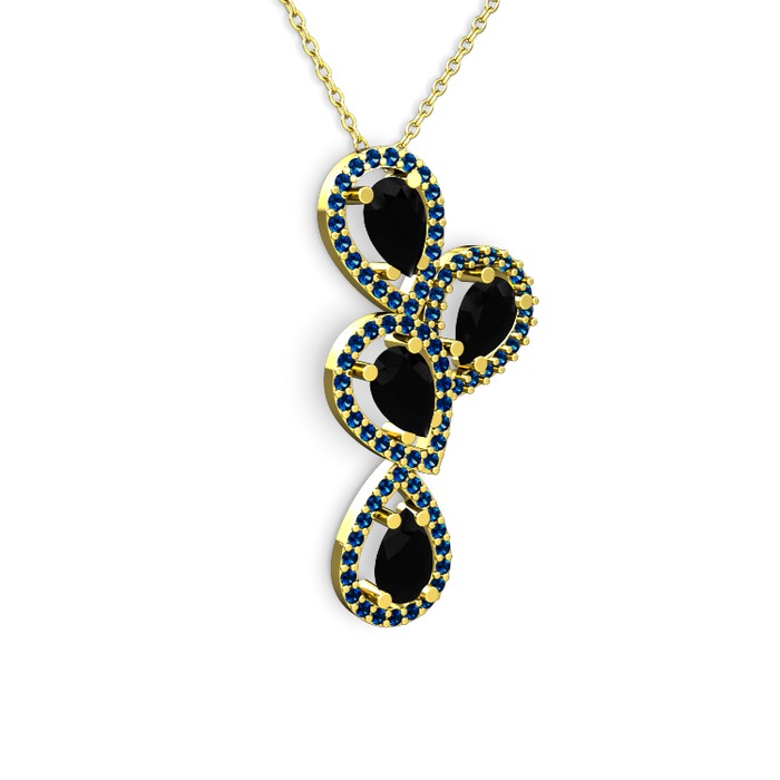 Siyah zirkon ve lab safir 18 ayar altın kolye (40 cm altın rolo zincir)