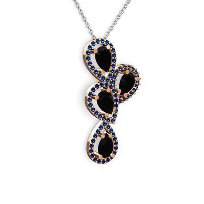 Siyah zirkon ve lab safir 925 ayar rose altın kaplama gümüş kolye (40 cm beyaz altın rolo zincir)