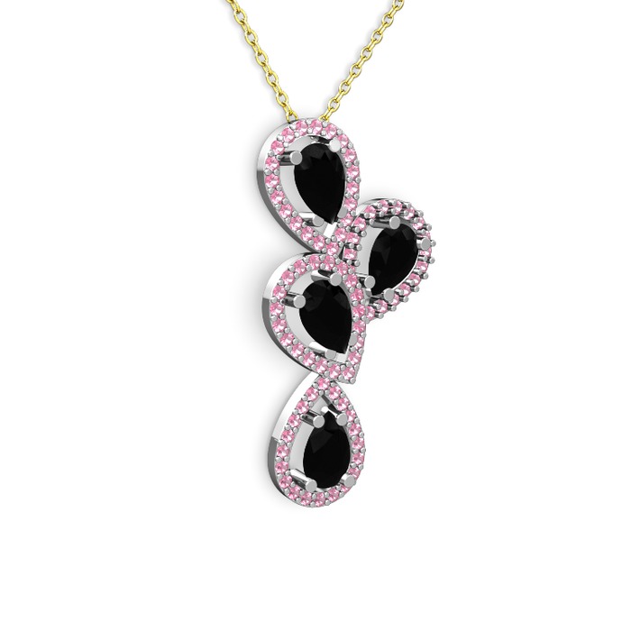 Siyah zirkon ve pembe kuvars 925 ayar gümüş kolye (40 cm altın rolo zincir)