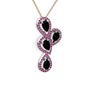 Siyah zirkon ve rodolit garnet 8 ayar beyaz altın kolye (40 cm rose altın rolo zincir)